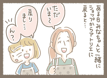 ある日みなちゃんと一緒にショップからアトリエに戻ると・・・