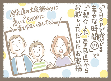 「SHOPで感じる幸せな時間 その17」でご紹介した、奈良県から合気道の大会の終わりにお越しいただいたお客様