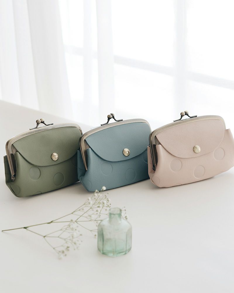 はじめてのKanmi、はじめての革小物。「ちょっといいもの、長く使いたい!」と思ったら、自分らしい暮らしの第一歩です。そんな心地よい生活のスタートを、Kanmiの「キャンディ ルーフ親子がま口」と一緒に。無骨なイメージのある本革のお財布ですが、Kanmiのがま口は一味違います。 革の風合いを生かした繊細なカラーは、作るたびに異なる一点もの。 女性の手にほどよい大きさ、コロンとやさしい曲線のフォルム。