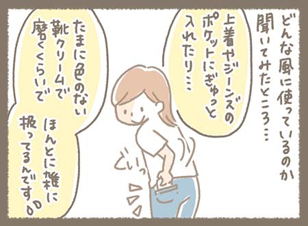 お客様「上着やジーンズのポケットにぎゅっと入れたり、たまに色のないクリームで磨くくらいで本当に雑に扱っているんです…!」