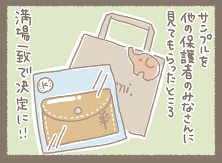 サンプルを他の保護者のみなさまに見てもらったところ満場一致で決定いただけたとの事。
