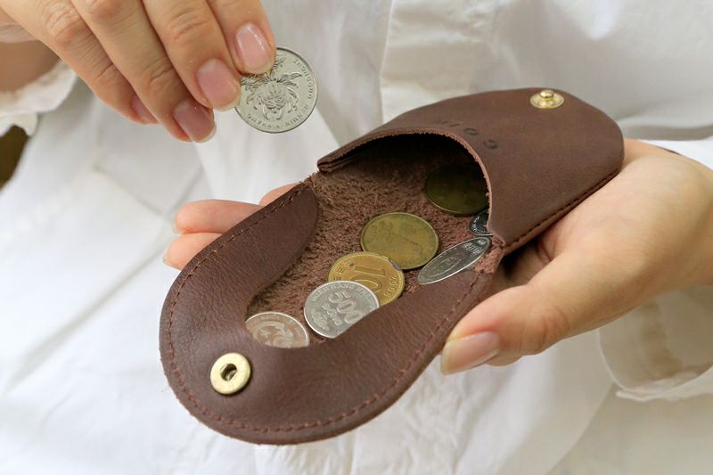 濃い目のブラウンが、シンプルなデザインに映える、大人のコインケース。