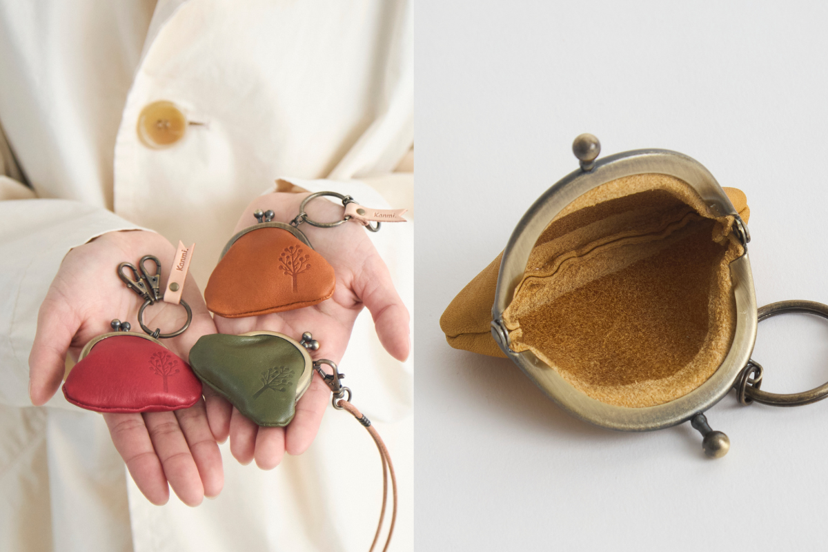 口金に巻いた革が上品な印象の「itsu mono リトルがま口」