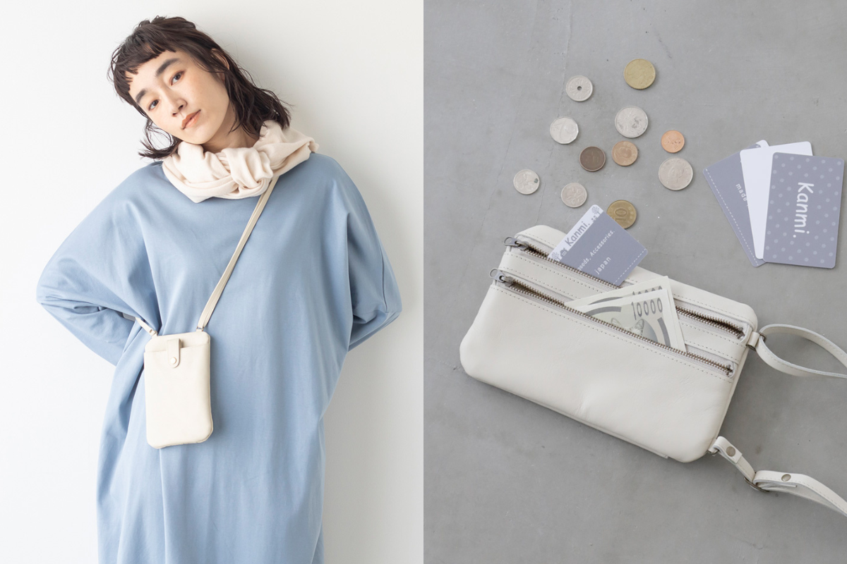 お財布が一体型になったバッグの魅力は、大きな収納力と使い勝手の良さを両立してくれるところ。浅草生まれの革小物ブランドKanmiでは、実用性のある収納力や機能はもちろん、女性の心をくすぐる柔らかい雰囲気とすっきりとしたデザインのアイテムを取り揃えています。カードポケットやファスナー付きのポケットがたくさんあって、ついつい増えがちなポイントカードや診察券、鍵、バッテリーケーブルなど細かいアイテムを整理して入れられるのが魅力です。ナチュラルなカラーとさりげないおしゃれ感は、シンプルなスタイルからカジュアルなファッションまで幅広くあわせやすいのも嬉しいポイントです。