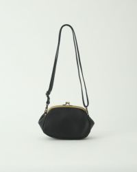 小銭、リップ、イヤホンなど、迷子になりがちな小物は、小さめがま口の中へ。左右のスペースが分かれているので、カバンの中で物が移動しにくく、ちゃんと定位置に収まってくれます。「ここに入れよう」と自然にと物の住所が決まりそう。見た目はすっきり使い心地もちょうど良いい、がま口の個性が光るポシェットです。
