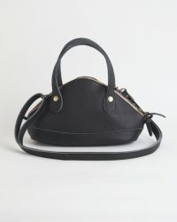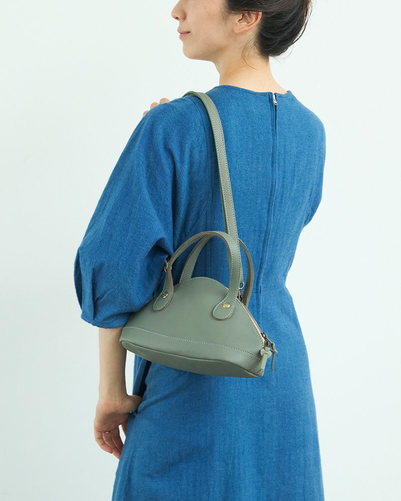 ファスナーが山のようにカーブして大きく開くシルエットが個性的。マッシュルームのように見えるので、「マッシュトートショルダーバッグ」と名づけました。部屋にかけて出番を待っている時も、存在感があるバッグです。