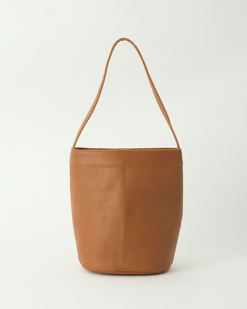 楕円の底マチにそって真ん中がぷっくりと膨らんでいるバケツ型で、すっきりとかわいい印象。見た目以上にたっぷり入って、たくさん入れてもシルエットが崩れにくいかたちです。500mlのペットボトルやお弁当、A5ノートやiPadもきちんと収まるのでお仕事バッグとしても頼りになりそう。あなたの毎日を、まあるく支えてくれる存在です。