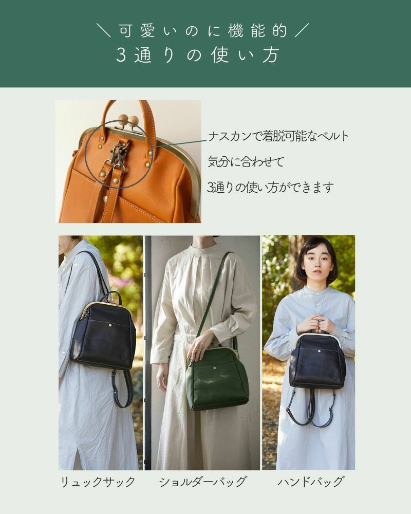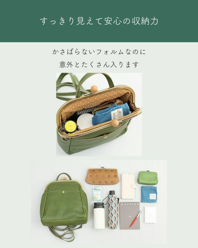 浅草革小物Kanmiから、コロンとレトロな「がま口バッグ」が大集合!A4収納OKで通勤通学におすすめなバッグや、必需品だけ気軽に持てるポシェットまで。ハンドバッグ、ショルダーバッグ、手持ちと肩掛け2WAYで使えるバッグなど種類も豊富。