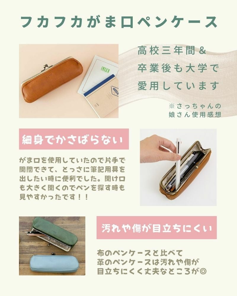 やさしい手触りのレザーはシンプルな魅力いっぱい。 ふっくらしたデザインが可愛いがま口タイプのペンケース コロンとまるい実力派「フカフカ がま口 ペンケース」