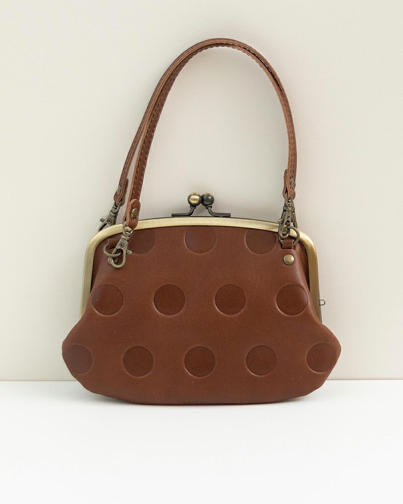 オリジナル水玉のキャンディシリーズから、存在感ばつぐんの、持ち手付きのがま口が新登場。
