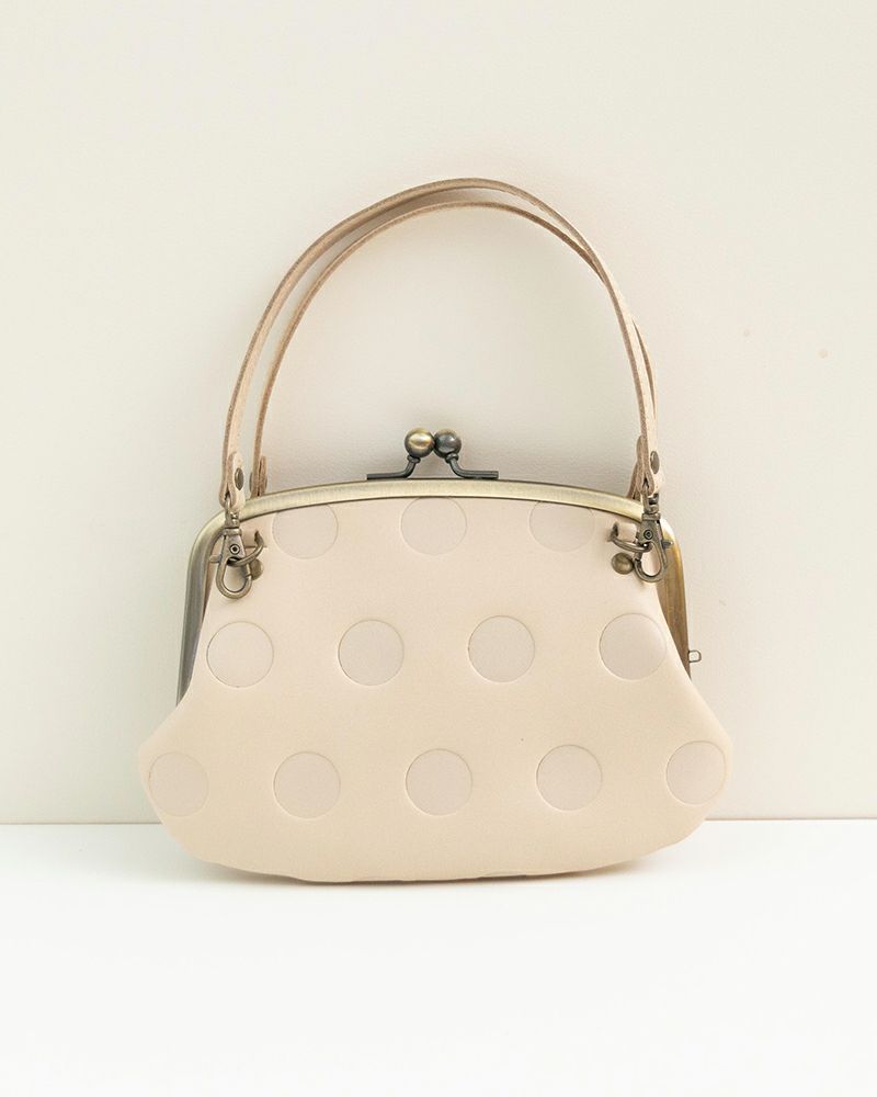 オリジナル水玉のキャンディシリーズから、存在感ばつぐんの、持ち手付きのがま口が新登場。