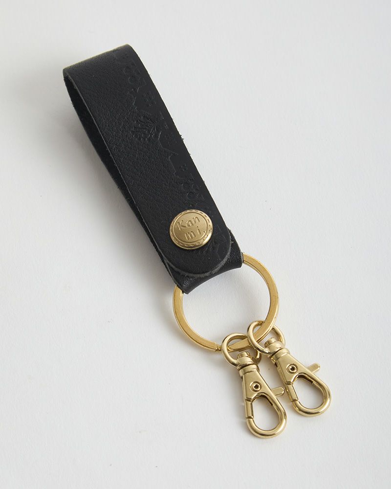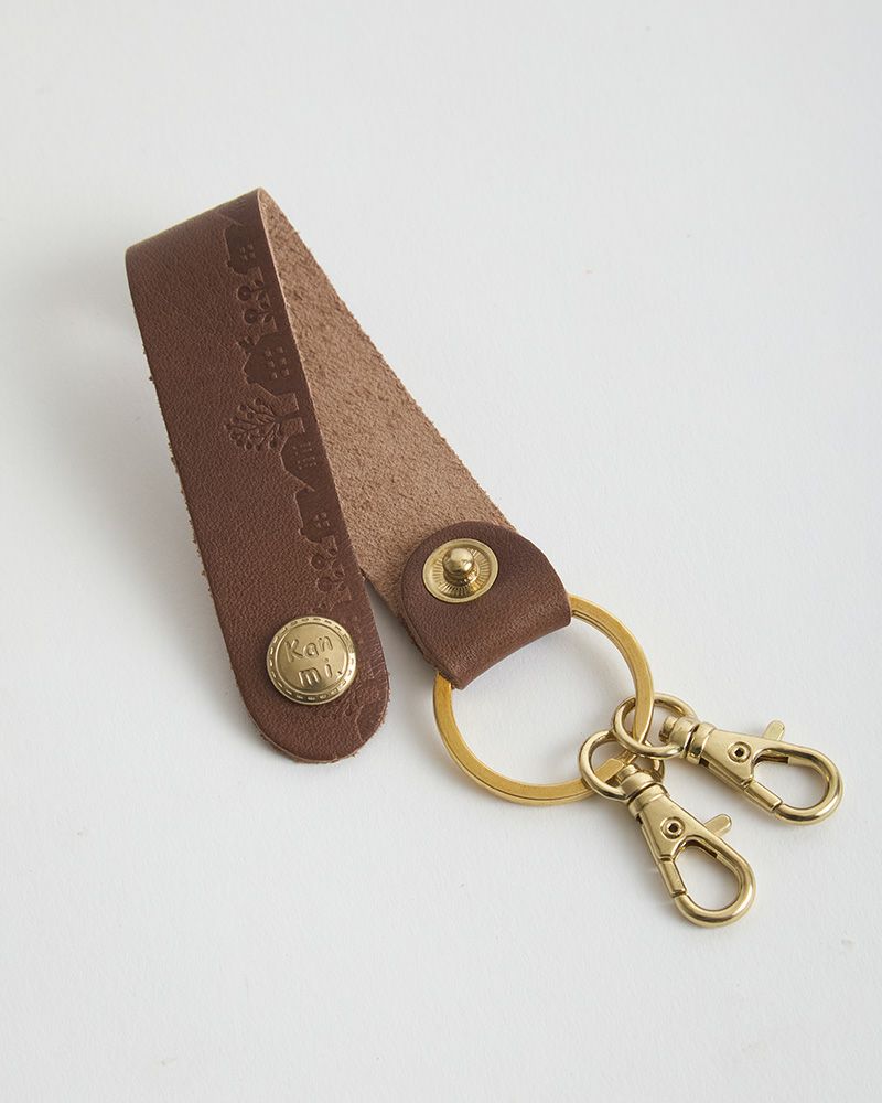 キーリングとKanmi.のロゴ入りホックなど、金具を真鍮で統一してあるので高級感があります。ギラギラしすぎない、ちょうど良いツヤ感がとても上品。使えば使うほど味がでる真鍮と革の組み合わせなので、一緒に時間を重ねるのを楽しめそう。