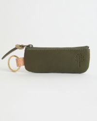 横長のポーチの右側にはドロップツリーが。キーリングとポーチを繋ぐヌメ革に押されたKanmi.のロゴも目立ちすぎずさりげないアクセントになっています。