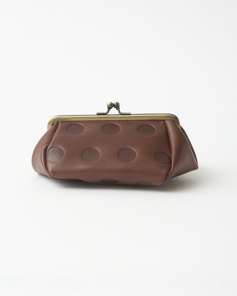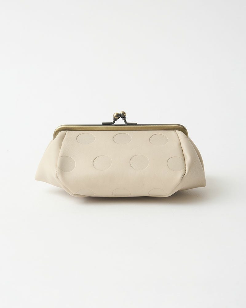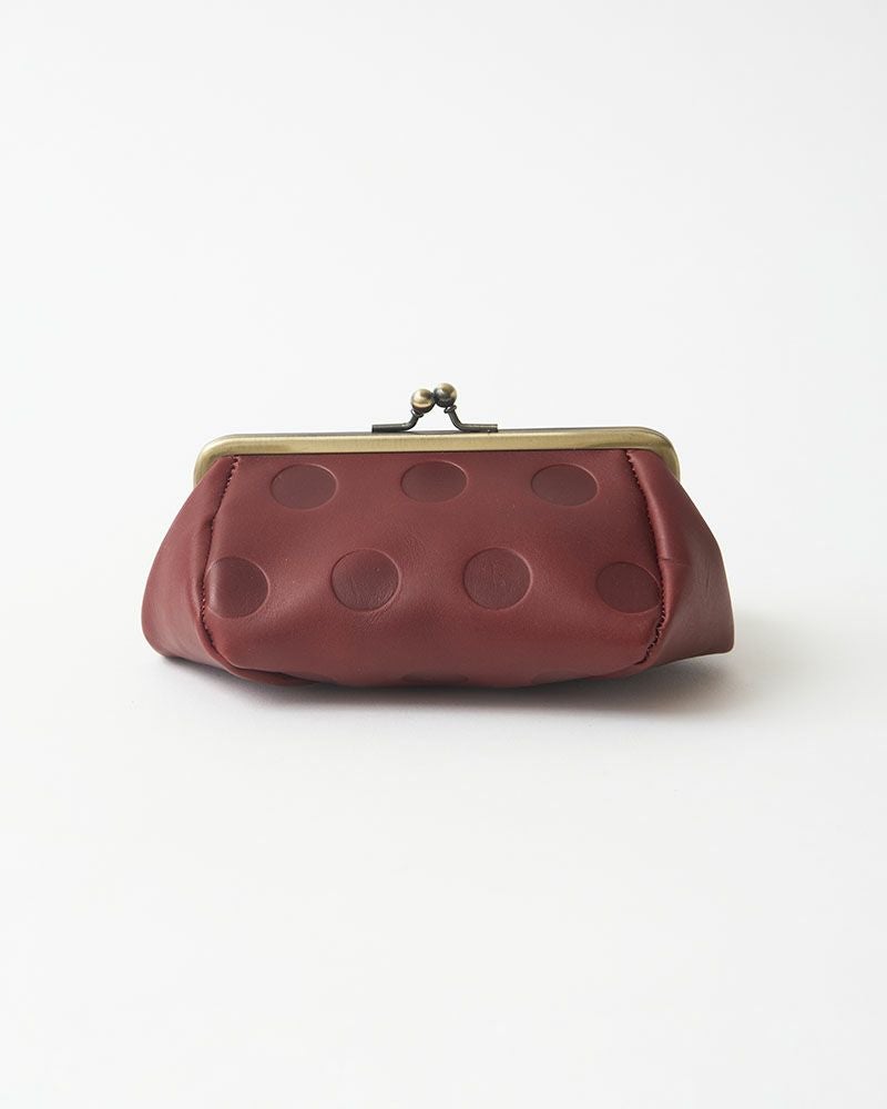 Kanmi.オリジナルの水玉「キャンディシリーズ」は丸の大きさや間隔、配置にまでこだわって作りました。ホックもKanmi.オリジナルロゴ入り。 牛革に型押ししていますので、沈み込んだ部分とのコントラストが魅力です。 使うたび、ポコポコとした手触りがほっこりさせてくれそう。