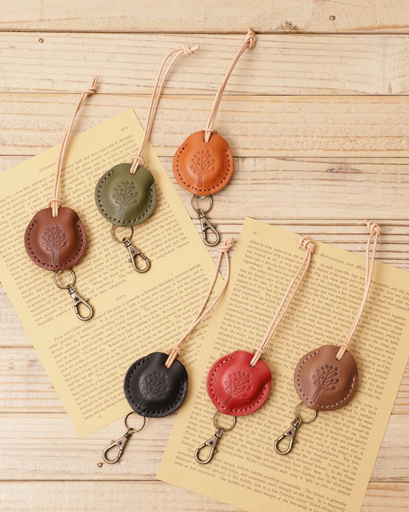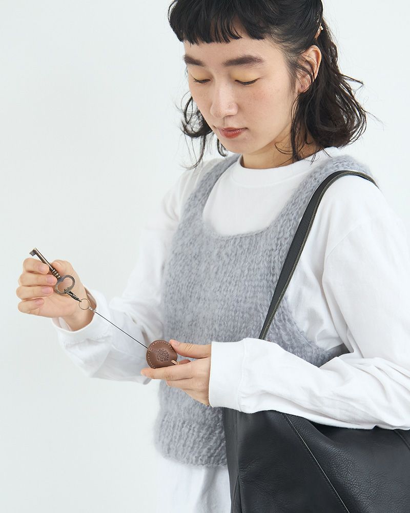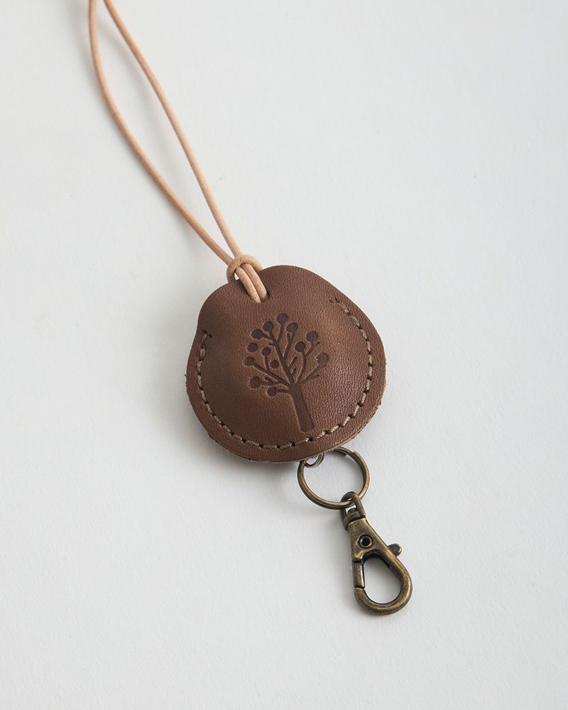 ぶら下げる革紐には、革そのものの色を生かした丸い紐を使っているのでシンプルで柔らかい印象。本体をくるっと通してお好きな場所に付けてお使いください。ちょこんと寄り添って毎日をふっくらと優しい気分にさせてくれそう。