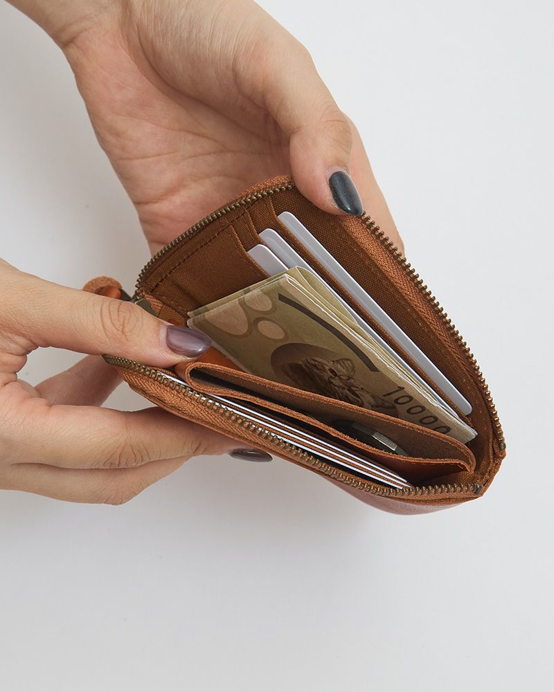 Kanmiの「L型財布」は、とっても薄いんです!長財布と二つ折り財布どちらがお好き?小さめバッグでも、荷物が多くてもコンパクトだから大丈夫。かさばらないのに収納はしっかり。L字に開くファスナーのおかげでスマートにお会計。性別問わず好評です。