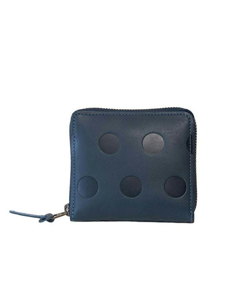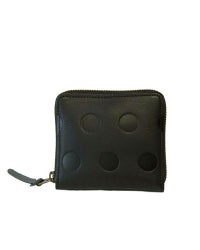 一見シンプルな見た目のラウンドファスナーウォレットですが、レザーに型押しされた水玉模様がさりげない大人の可愛らしさを感じさせるオシャレさん向けのコンパクトウォレットです。モノトーンでもスタイリッシュさを感じさせてどんな場面にも合わせやすいですし、どの色も落ち着いた大人の色味なので、赤や緑なども挑戦しやすいカラーになっています。
