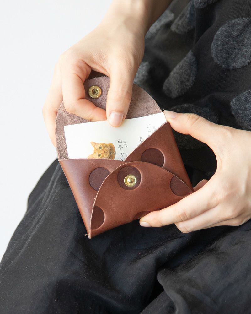ポケットに入れられるコンパクトで軽いお財布。男性にも使いやすい切りっぱなしの潔さと、角と蓋のラウンドの柔らかい印象が絶妙なバランス。革の裏面の厚みを漉いたことで、内側もなめらかな手触りになって、使い込んでも毛羽立ちにくいのも嬉しいポイントです。