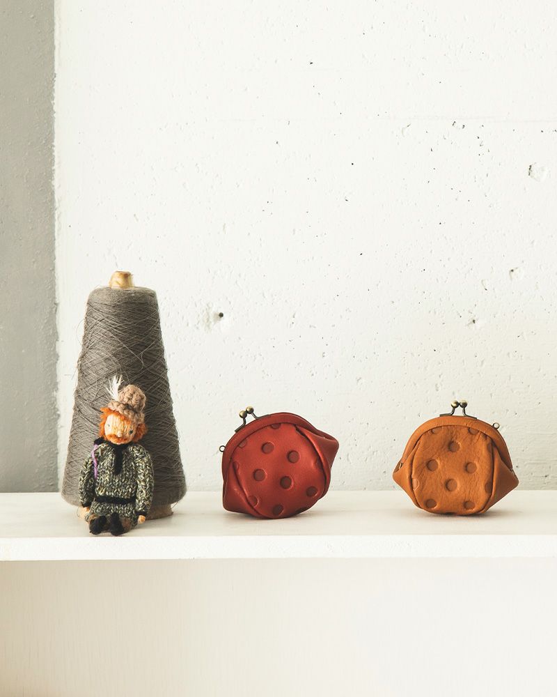 ドットの型押しがポイントのがま口。ふっくら丸みを帯びたフォルムで、どこかレトロな雰囲気が漂います。深さと丸みがあるので、ポーチやアクセサリーケースとして、鞄の中の細々としたものをまとめて収納。お財布としてお使いいただくのにも便利。ポケットに収まるサイズです。