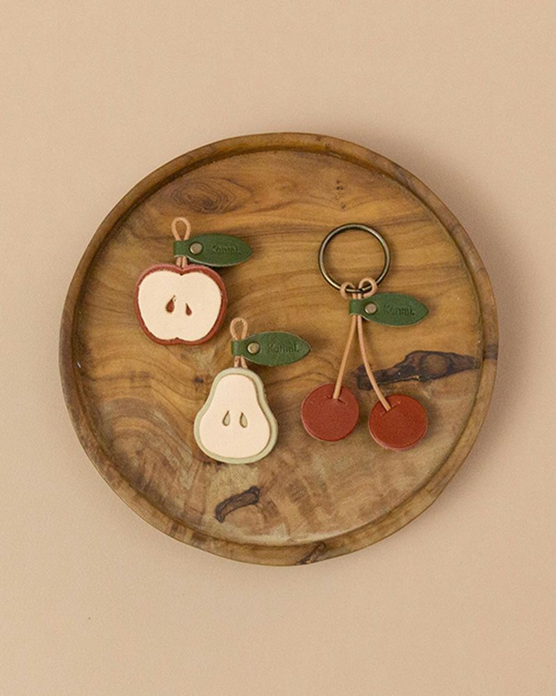 リンゴに洋梨、さくらんぼ。 おいしい季節の訪れを感じるジューシーな果物たちを集めて、革小物を作りました。 お気に入りの果実といつも一緒に、いつだってフレッシュな気持ちで歩いていけそう。