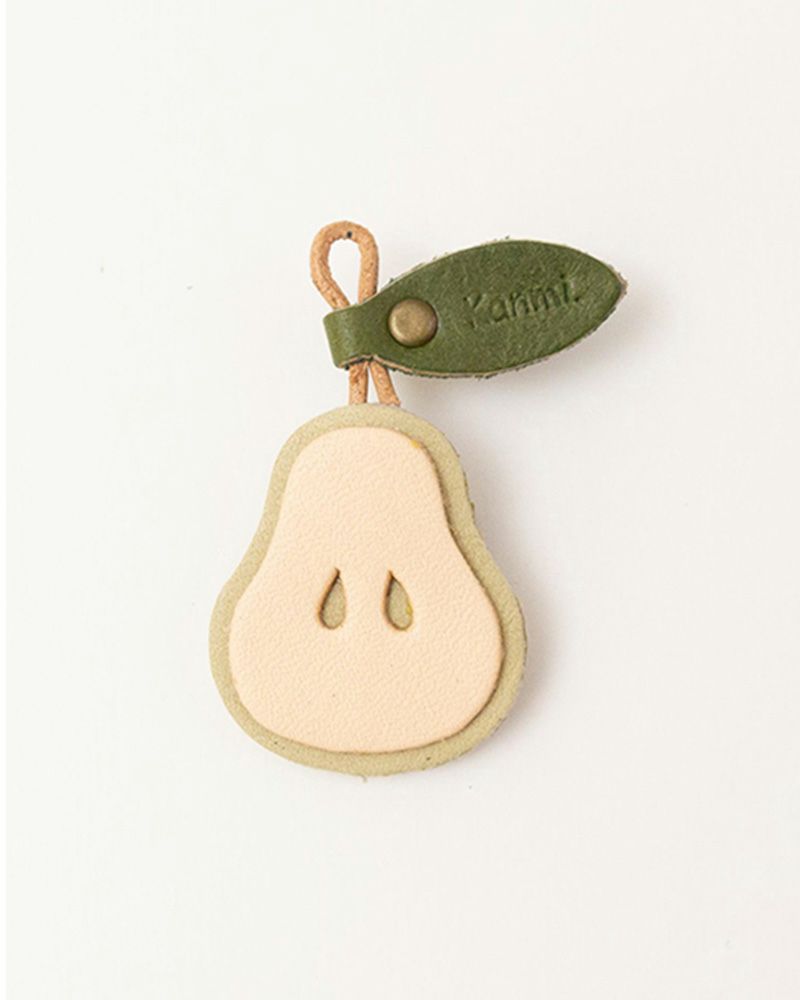 本革の上品さはそのまま、カラフルでマットな質感がかわいいアクセサリーにしあがりました。 左右対称じゃない自然なフォルムの果物だから、ひとつ付けるだけでやさしい雰囲気をまとわせてくれそうです。