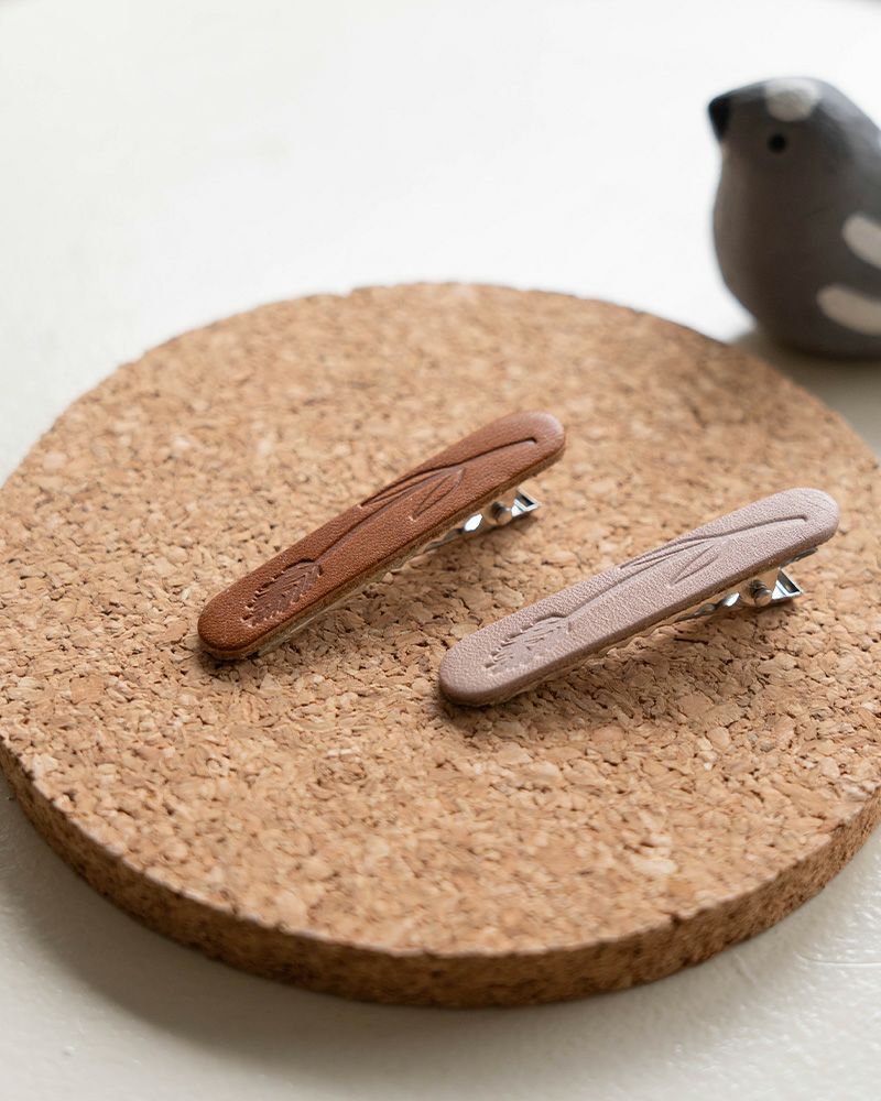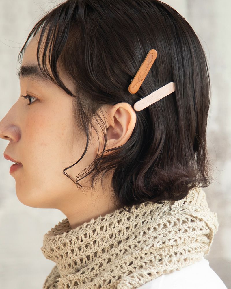 くすっと笑える本革ヘアクリップ。雨の日は髪型がうまくきまらないな、そんなときにも、ぱちっと留めるだけで、心が晴れる