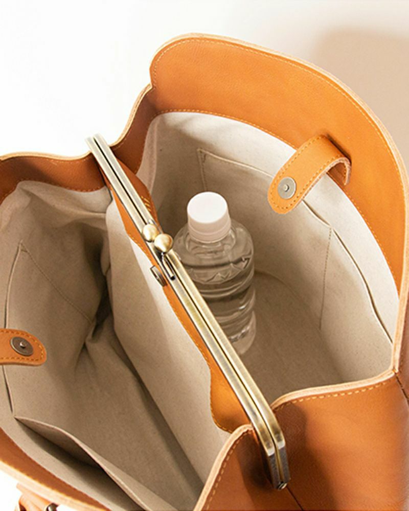 中ポケットも大きめで仕切り上手。真ん中のがま口にはお財布や鍵。 かさばる書類やがま口ポーチ、マイボトル、折りたたみ傘などは左右のスペースへ楽に収納。書類やノートPC、タブレットなどもここに収納できます。 冷暖房の寒暖差の激しいオフィスでの必需品、羽織ものも一緒に。