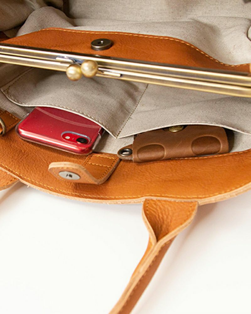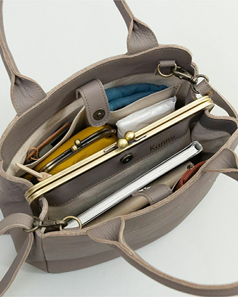 仕事の日、おやすみの日、忙しい日、余裕のある日。 どんな毎日もずっと隣にいてくれそうな、とっておきのバッグが新登場。 金箔押しのKanmi.のロゴマークがちょっと特別です。 お仕事モードのきれいめスタイルにも、コットンのワンピースにも、分厚いコートにも。 どんな私にもしっかり合わせてくれる、包容力のある一点です。