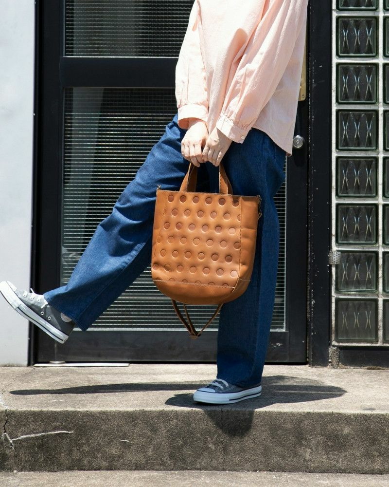 キャンディみたいな水玉模様はKanmi.オリジナル。丸の大きさ、間隔、配置までこだわって作った水玉もようがふっくらと型押しされています。 牛革に型押しし、沈み込んだ部分が少し濃い色に仕上がりました。コントラストが魅力です。 ポコポコとした手触りもなんだかほっこりとさせてくれます。 「収納力ばっちりなキャンディシリーズのバッグがほしい!」というお客様のお声から誕生しました。