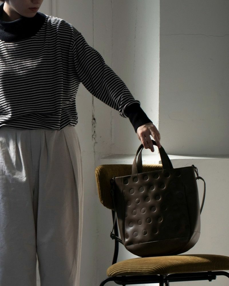 普段使いにも、仕事使いにも、そして遊び使いにも。 どんなシーンにも持ってもらえるように、かわいさ、収納力、使い勝手、ぜんぶ惜しみなく詰めこみました! 書類もすっきり入って、重さを感じにくくて、大人っぽく持てる水玉模様のバッグです。