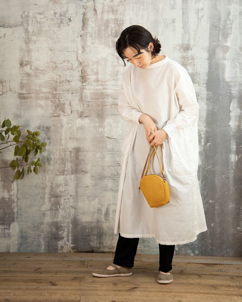 バッグの中には大き目な内ポケットが2つ。小さなバッグの中に3つのお部屋ができるので整理整頓が簡単にできて、荷物が迷子になりません。必要なものが一目で見渡せてすぐ取り出せるのがいいところです。 レジでのお支払い、ハンカチやティッシュを使いたいとき、スマホでちょっと調べもの…さっと取り出せてストレスフリーなポシェットです。