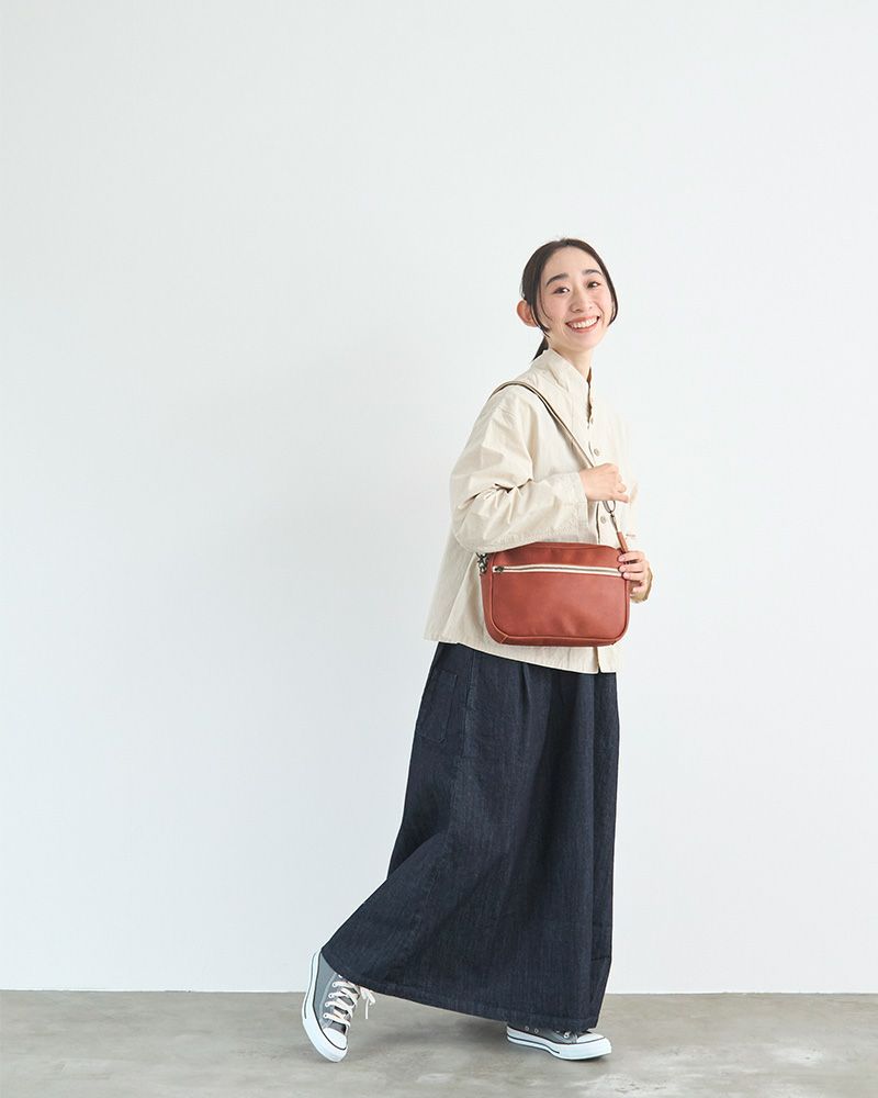 短めショルダーで斜めがけをすると体にフィットしてくれます。動いてもパカパカしないので、自転車に乗る時やお子さんと公園で遊ぶときにぴったり。両手をフリーにして、身軽に出かけましょう。