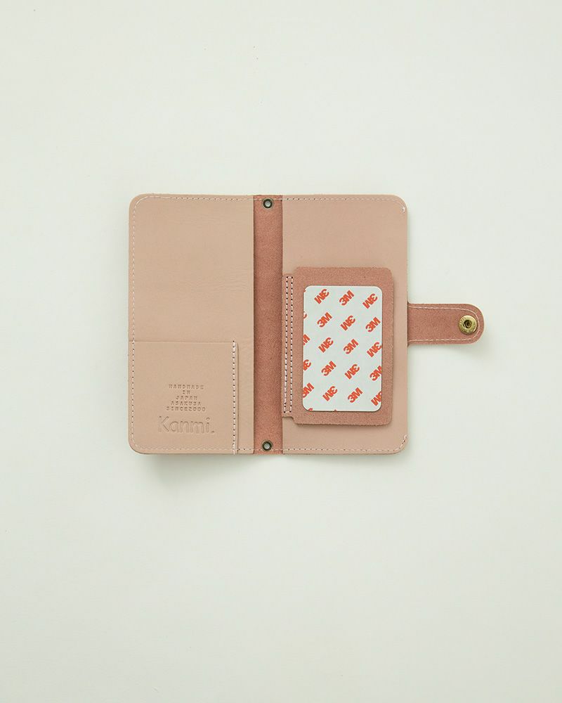スマホケースについてのアンケートでは「どんな形のスマホにも対応してほしいけど、スライド式は写真を撮るとき不便」というお声が多数。そこで、手帳の部分をぱたんと折りたたむことで、サッとかまえてパッと撮れるスマホケースを作りました。いつもはスナップボタンでスマホ貼り付け部分と手帳がくっついているから、必要なときだけ。