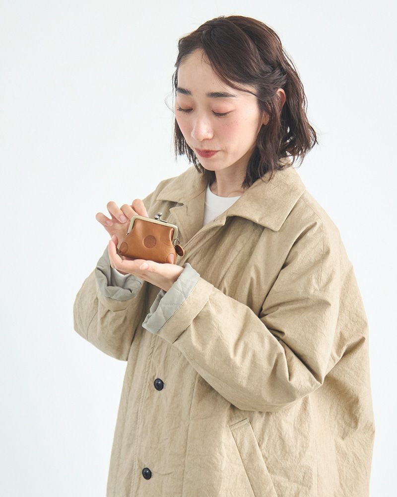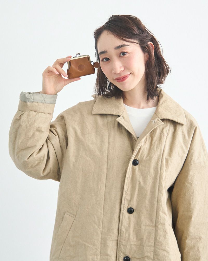 内側に綿麻の布、真ん中には仕切りがついて使いやすくリニューアル。以前よりもがま口のカタチが四角くなったので、少ししゅっとした印象に。