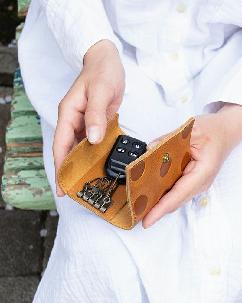 ぽこぽこ型押しの水玉がかわいいキャンディシリーズから、軽くて丈夫なキーケースが登場です。ナチュラルな風合いのカラーバリエーション。革のキーケースと聞くと、無骨なイメージがあるかもしれませんが、凸凹なドット柄に肌なじみのいいカラーが、日常にオトナのかわいらしさをプラスします。