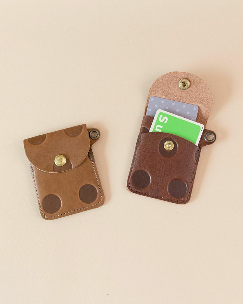 大人気キャンディシリーズに屋根つきパスケースが新登場! 本革のパスケースは、長く使うと革が柔らかくなってくるため、「カードが抜けやすくなった」というお声をいただくことも。そこで、しっかり真鍮のKanmi.オリジナルホックで留められる屋根をつけ、長く安心してお使いいただけるパスケースを作りました。