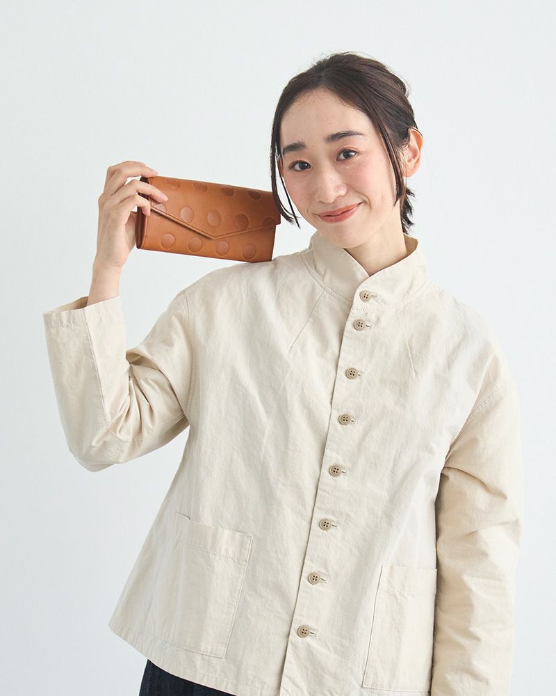 横長の封筒のかたちと水玉の組み合わせが、さりげないけれど個性的。鞄の中にしまっておくだけじゃもったいない。 クラッチバッグのように小脇に抱えて出かければ、普段のお買い物に特別な気分をプラスできるかも。