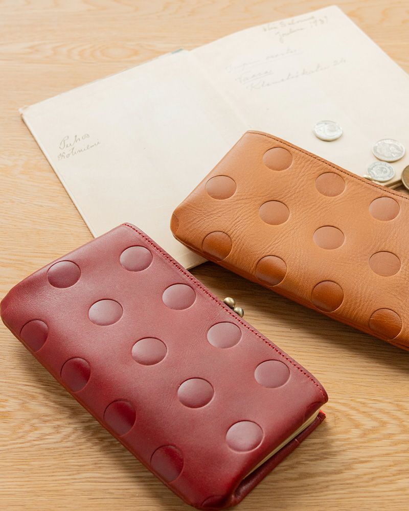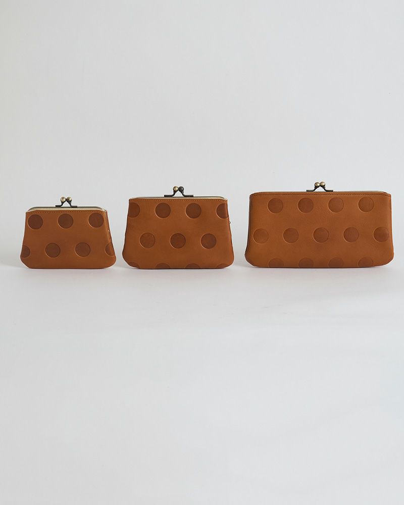 キャンディみたいな水玉模様はKanmi.オリジナル。丸の大きさ・間隔・配置もすべてオリジナルで、いちばんしっくりくるデザインにこだわりました。ふっくらとした凸凹に触れるたびに、気持ちもほっこりさせてくれる特別な水玉です。