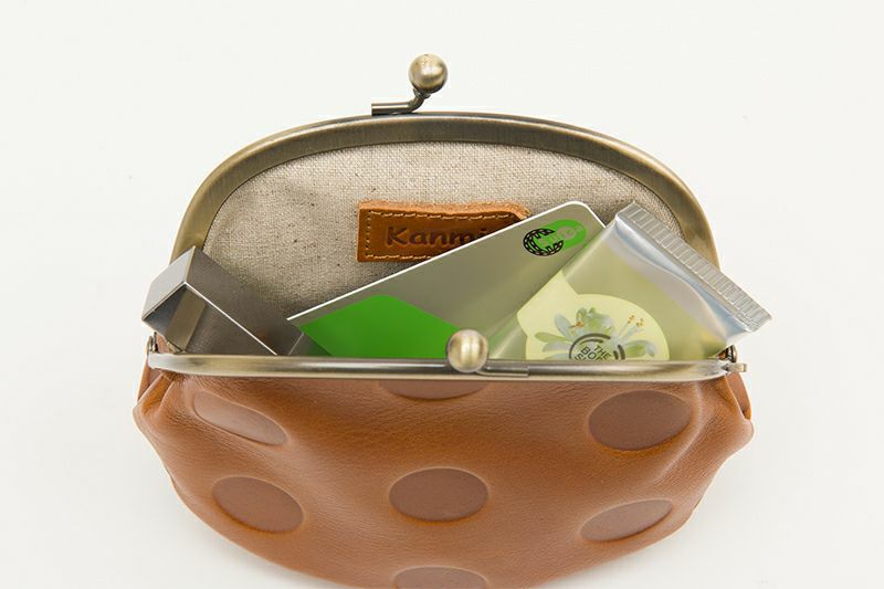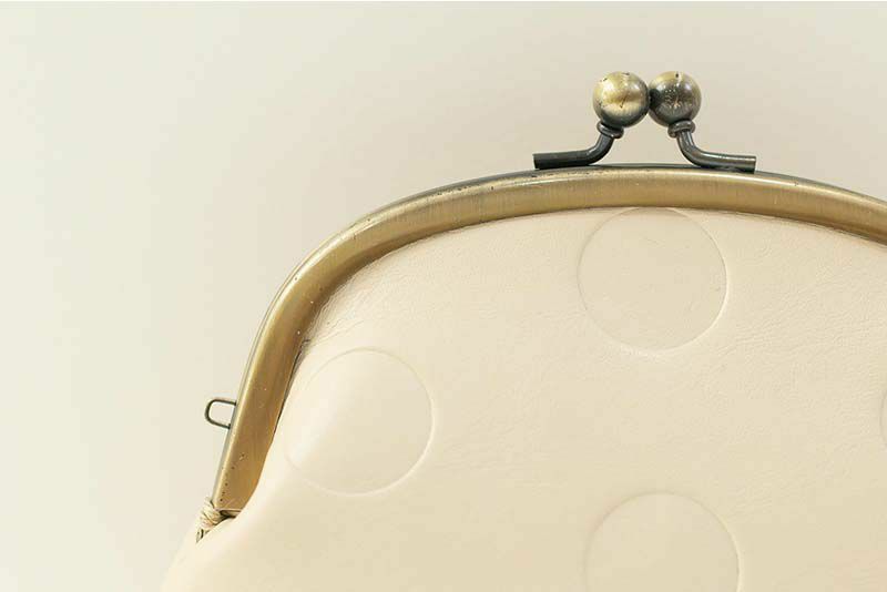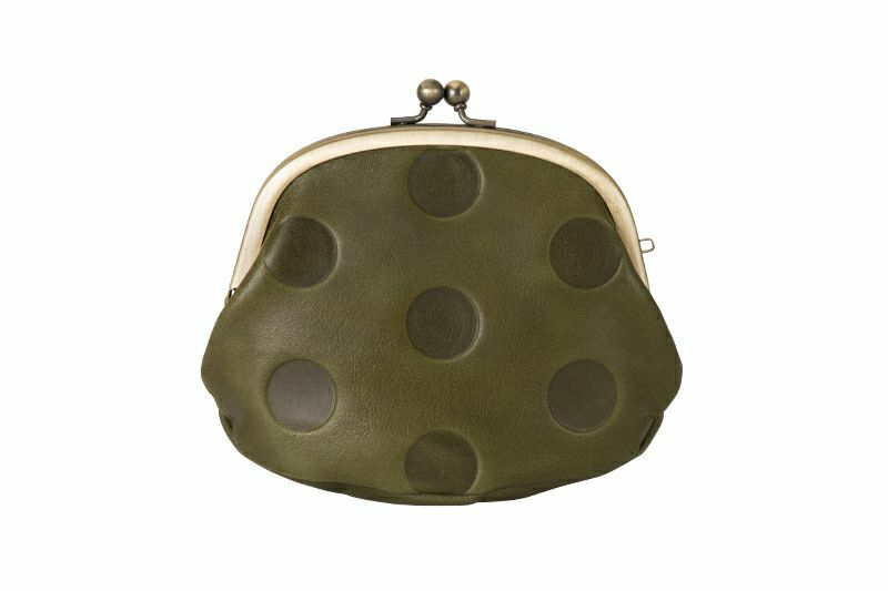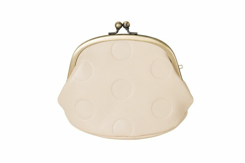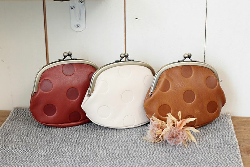 ドットの型押しがポイントのがま口。ふっくら丸みを帯びたフォルムで、どこかレトロな雰囲気が漂います。深さと丸みがあるので、ポーチやアクセサリーケースとして、鞄の中の細々としたものをまとめて収納。お財布としてお使いいただくのにも便利。ポケットに収まるサイズです。