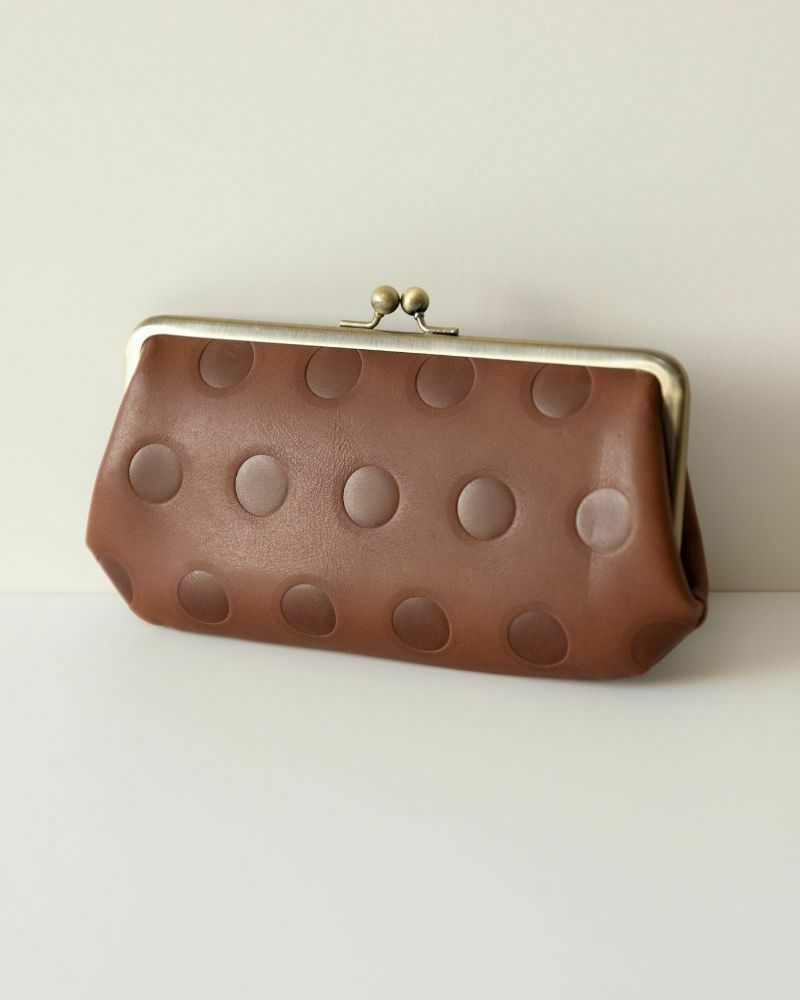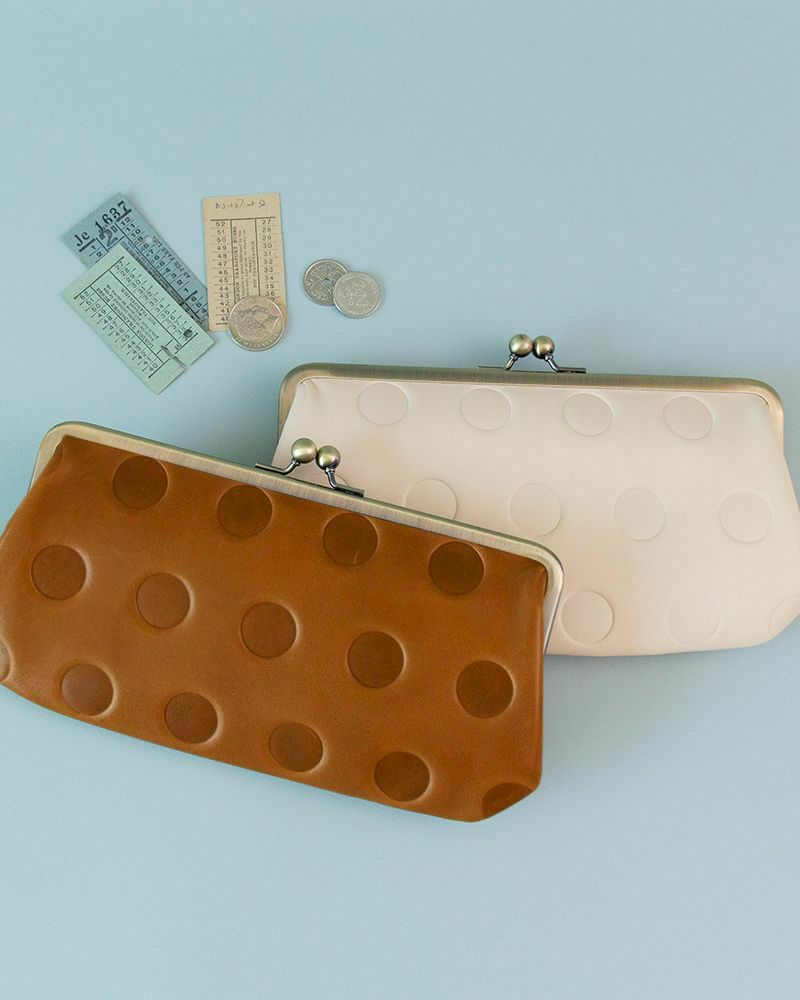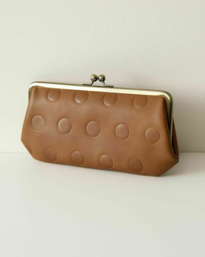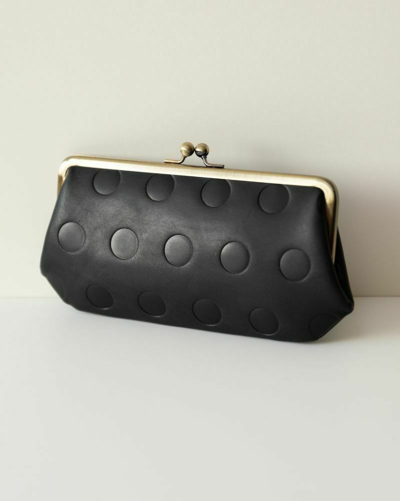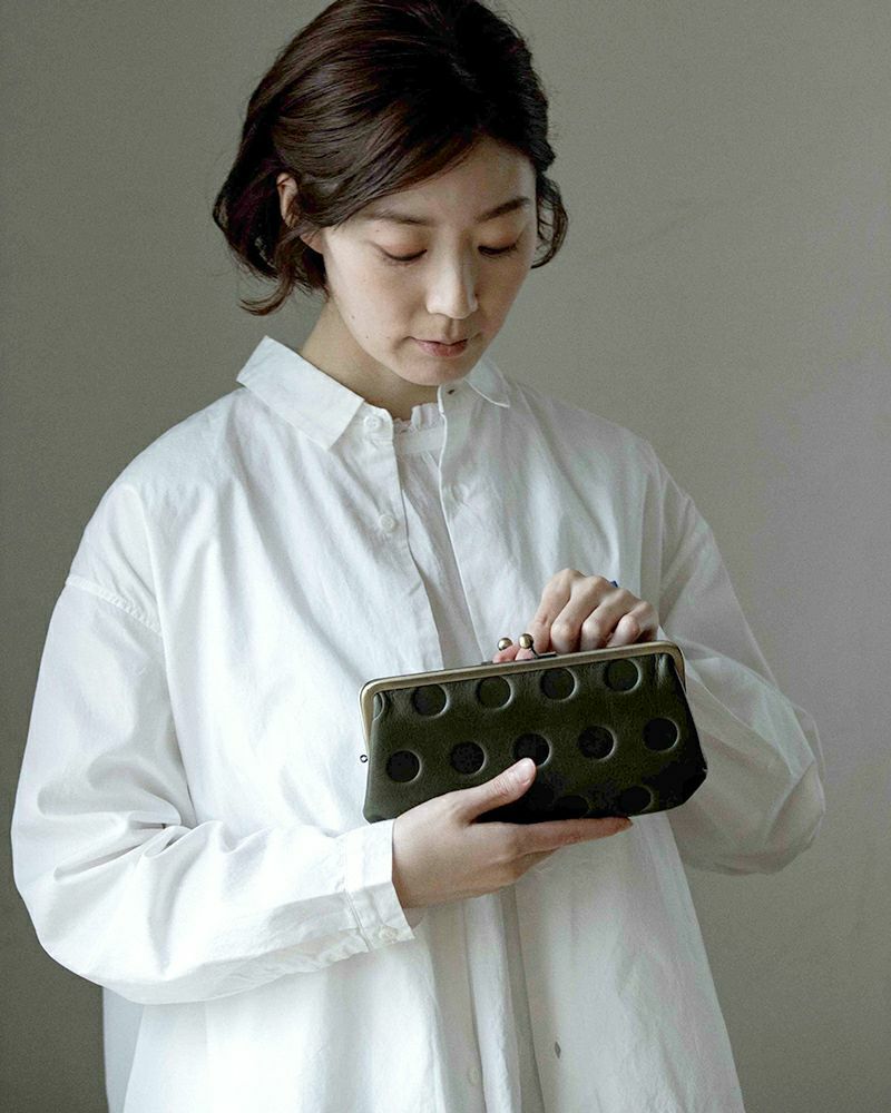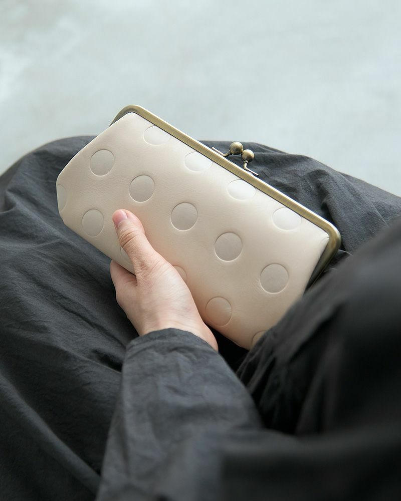 さらりとした肌触りの上質な本革にポコポコと押されたドット柄は、丸の大きさ、間隔、配置までこだわったKanmi.のオリジナル。ついつい撫でていたくなるほっこり感で、手にする度にうきうきした気持ちにさせてくれます。 お支払いの時はもちろん、持っているだけで可愛いと目を引く褒められ上手ながま口財布。大切な方への贈り物や自分へのご褒美にもおすすめです。