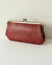 キャンディみたいな水玉模様が本革にポコポコと型押しされていて、見た目にも楽しいロングタイプのがま口財布です。 がま口部分がパカッと大きく開き、中身が一目で分かるのもとっても便利。 中は3つの部屋に分かれていて、小銭やお札をきちんと整理できて収納力も抜群です。 カード入れが8つ、札入れが2つ、マチ無しポケットが2つ。小銭入れはがま口です。