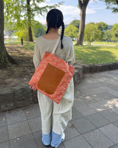 こちらのシリーズのトートに使われているのは、アメリカから届いたmoda fabrics。 絵本の中から抜け出てきたような遊び心あふれる柄が、日常に小さなワクワクを運んでくれます。 そこに牛革のハンドルを組み合わせることで、可愛らしさと落ち着きがほどよく調和しました。