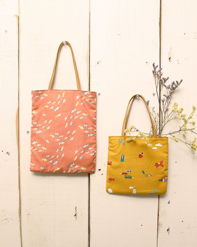 【会員様限定価格】Kanmi.公式ショップ限定商品!世界的に人気のmodaデザイン生地を使用 Kanmi|カラフルな生地のミニサイズトートバッグ「ポケット トートバッグ(S)」
