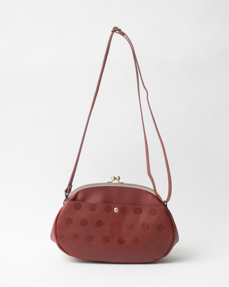 キャンディみたいな水玉模様はKanmi.オリジナル。丸の大きさ、間隔、配置までこだわって作った水玉もようがふっくらと型押しされています。 牛革に型押しし、沈み込んだ部分が少し濃い色でコントラストが魅力です。 ポコポコとした手触りもなんだかほっこりとさせてくれます。 傷付きにくいサラサラな本革は、使い込むとしっかりツヤがでて、より愛しく感じさせてくれます。ケア用品のBee エイジングオイルと相性◎