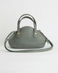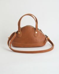 ファスナーが山のようにカーブして大きく開くシルエットが個性的。マッシュルームのように見えるので、「マッシュトートショルダーバッグ」と名づけました。部屋にかけて出番を待っている時も、存在感があるバッグです。