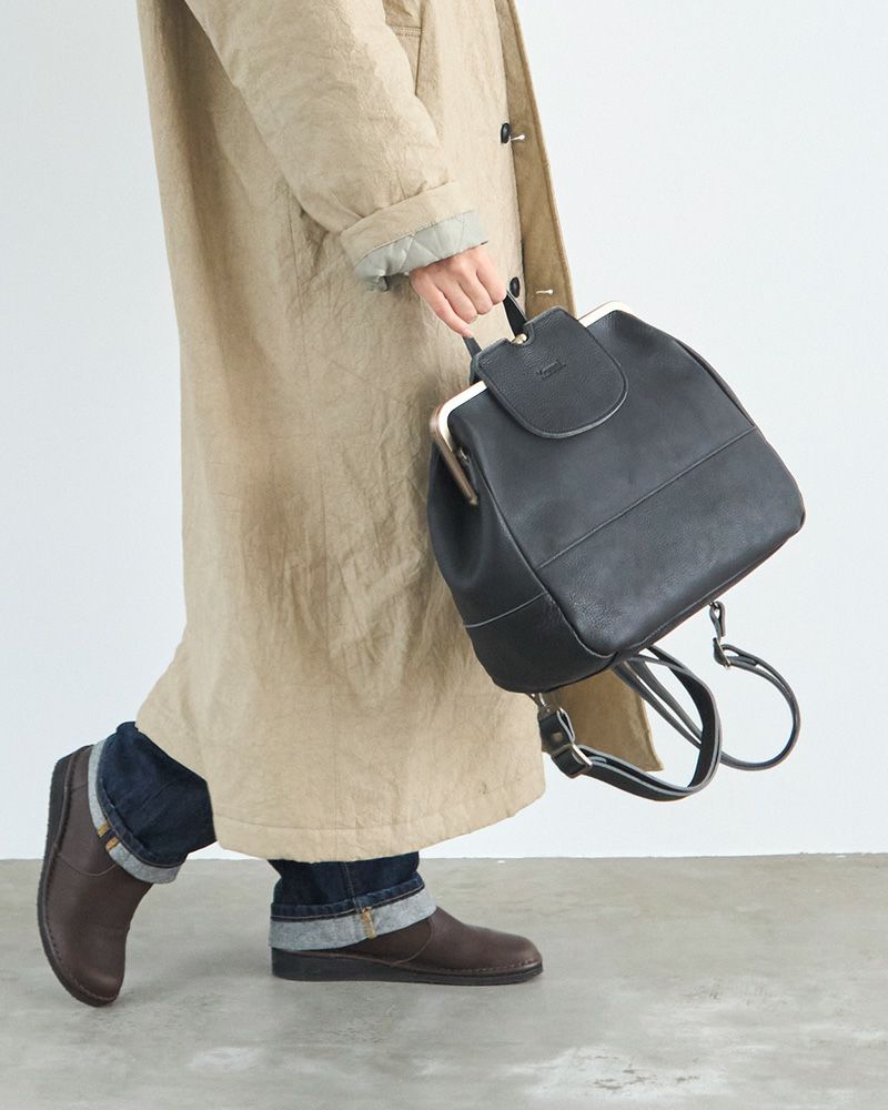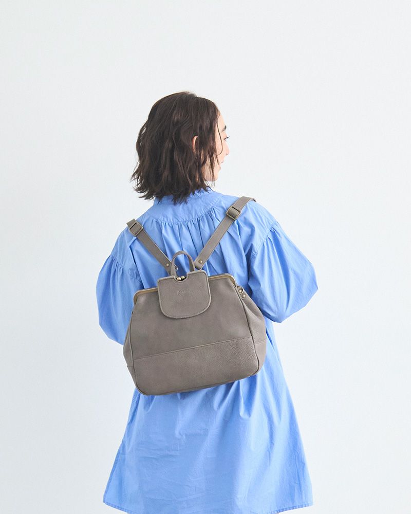 がま口をそっと包みこむフタが個性的な3WAYリュック 便利な3WAY「mukurino がま口 3WAYリュック」