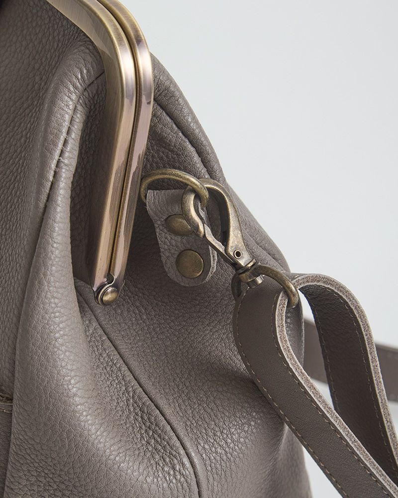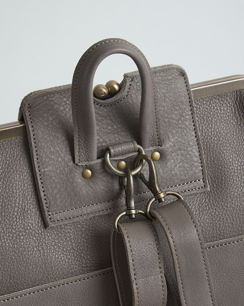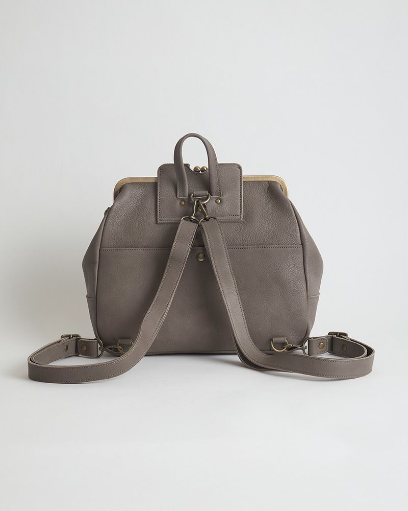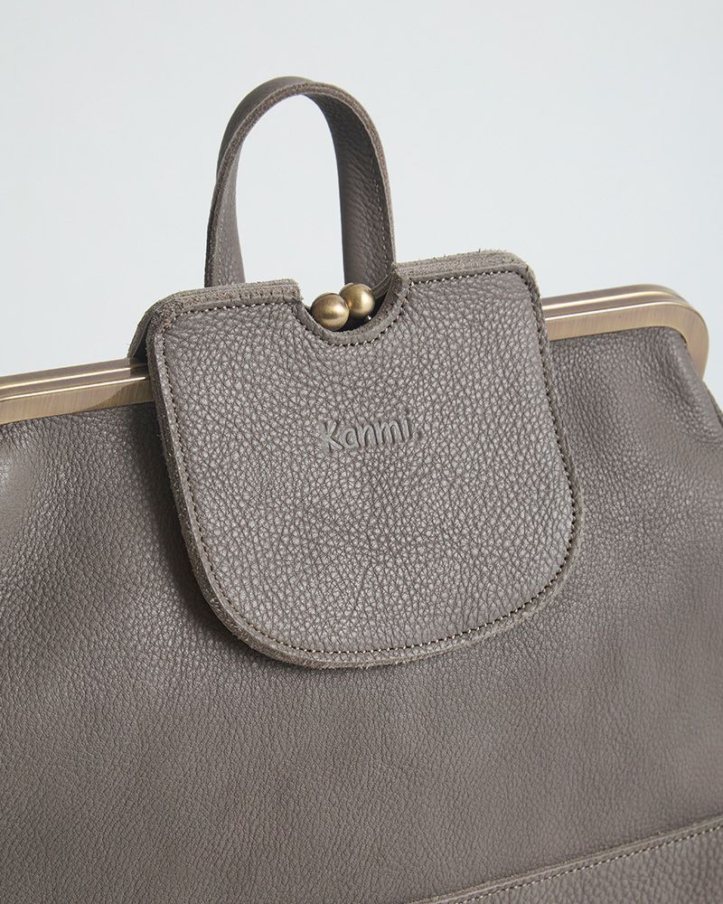 がま口を包み込むフラップの革を貼り合わせにしたので、以前のmukurinoよりもがま口を支える力がアップ。フラップのサイズが小さくなって、がま口のサイドが見えるようになりました。 リュックにした時に、小柄さんでも短めに背負えるように、ショルダーの長さも短くなりました。