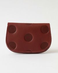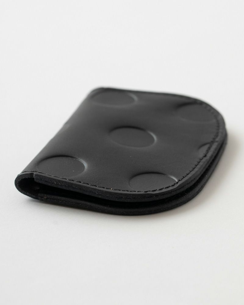 コロンとしたまぁるい形が、かわいらしさと柔らかさを感じさせる角の取れた二つ折りのカードケース。厚手のカードが片面に5枚ずつ、合計10枚収納できます。凹凸のあるドッドと落ち着きのあるオータムカラーの組み合わせが、シックでかわいい。革色によって雰囲気が違うので、あなたにちょうど良いかわいいを見つけてください。