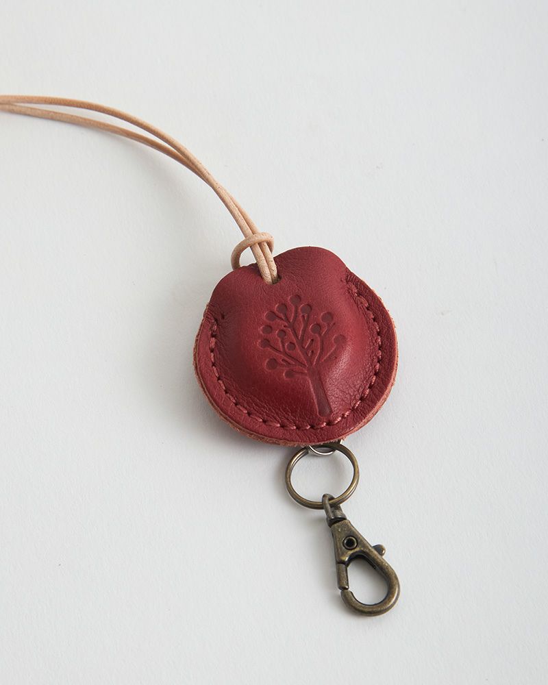ぶら下げる革紐には、革そのものの色を生かした丸い紐を使っているのでシンプルで柔らかい印象。本体をくるっと通してお好きな場所に付けてお使いください。ちょこんと寄り添って毎日をふっくらと優しい気分にさせてくれそう。