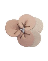 2色の革の花びらに組み合わせたビーズと刺繍糸。やさしい色で毎日を楽しい気分にしてくれます。